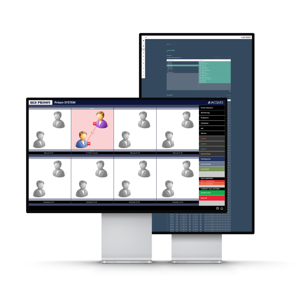 Jacques Non-Contact Visits System (NCV) allows prison/corrections visitors to communicate with individual inmates with no physical contact. Separated by a glass or Perspex barrier, visitors and prisoners can communicate using a pair of intercom terminals on either side, without physical contact.